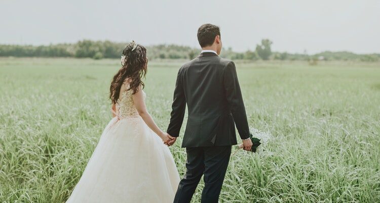 Happy Wedding Couple Walk Together